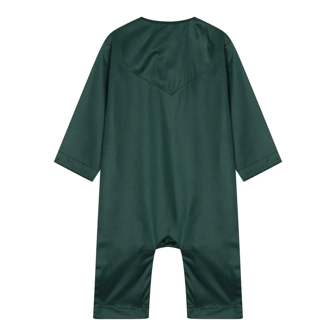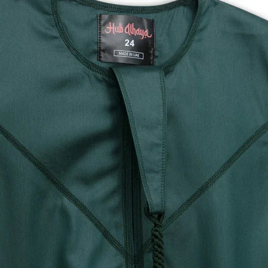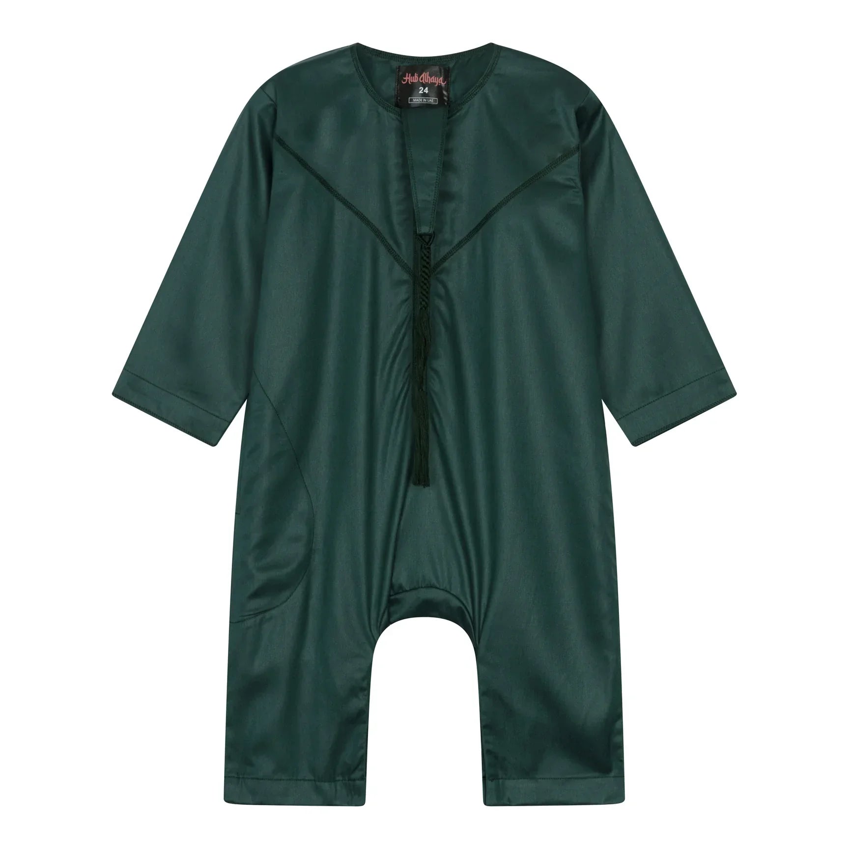 ملابس أطفال عالية الجودة، متوفرة بمقاسات تبدأ من حديثي الولادة. مصنوعة يدوياً كباقي منتجاتنا، نضمن جودة كل قطعة. تتميز بتطريز إماراتي تقليدي وشرابة طويلة قابلة للإزالة.