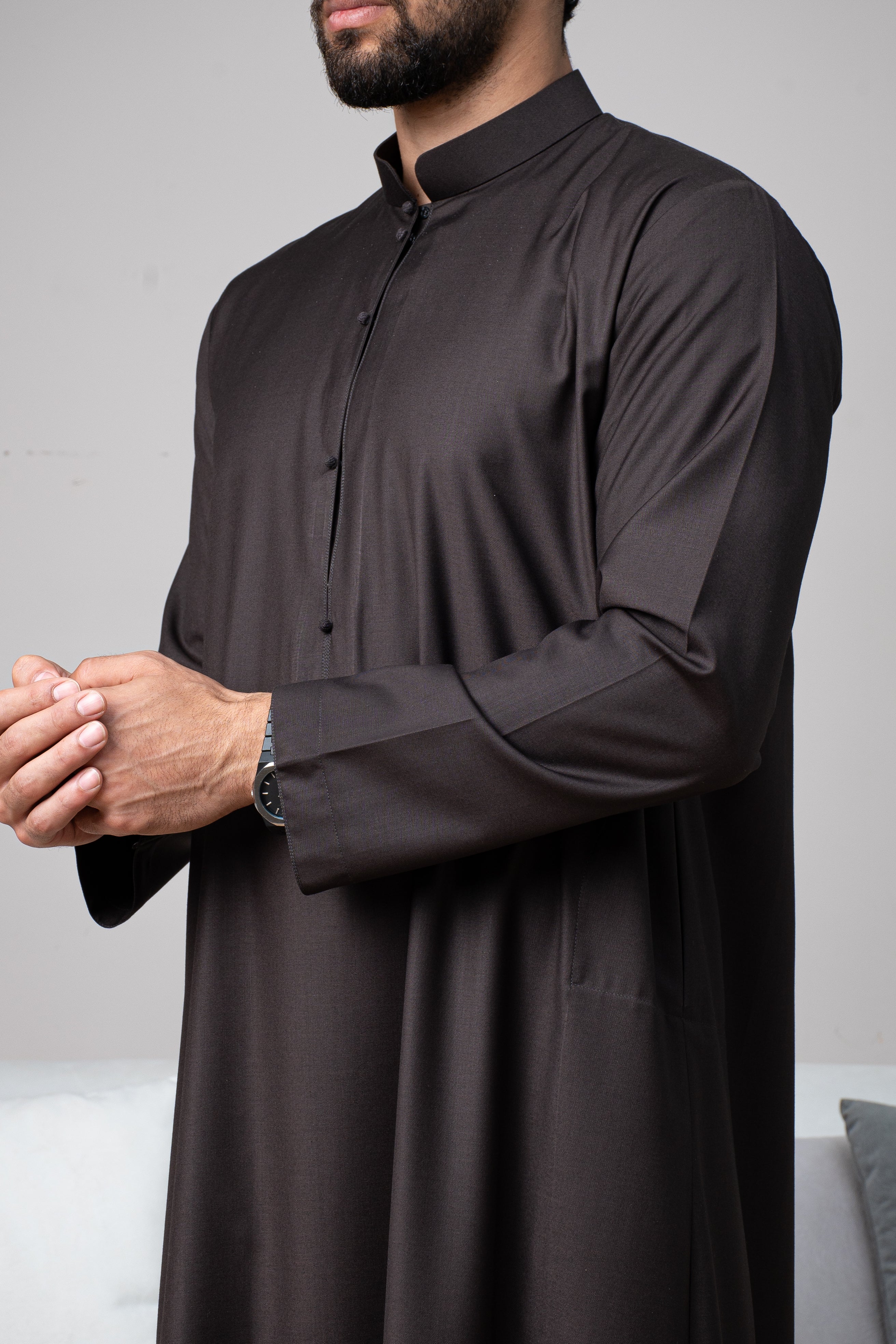 ثوب بحريني – صوف إيطالي فاخر بلون بني غني