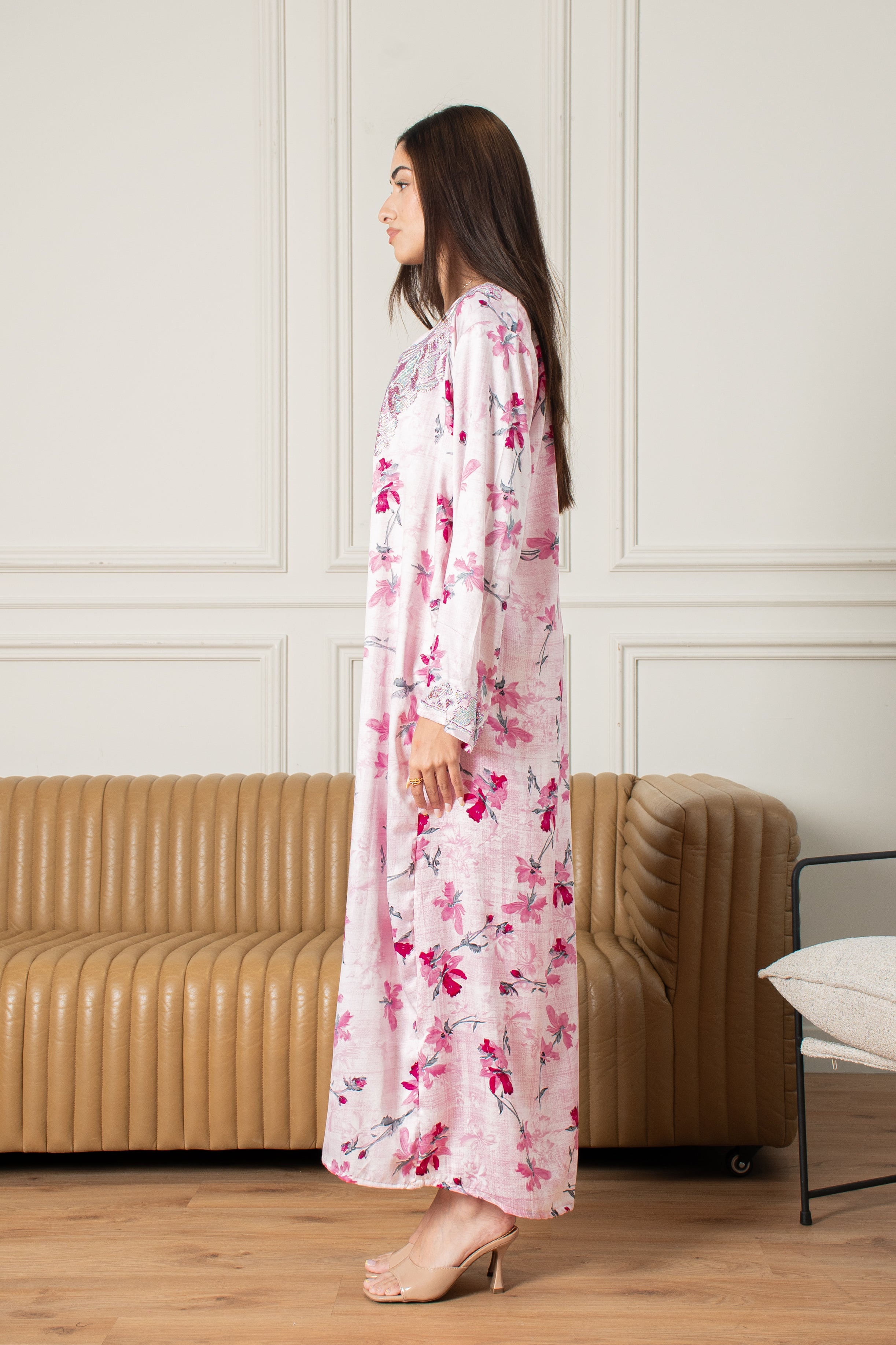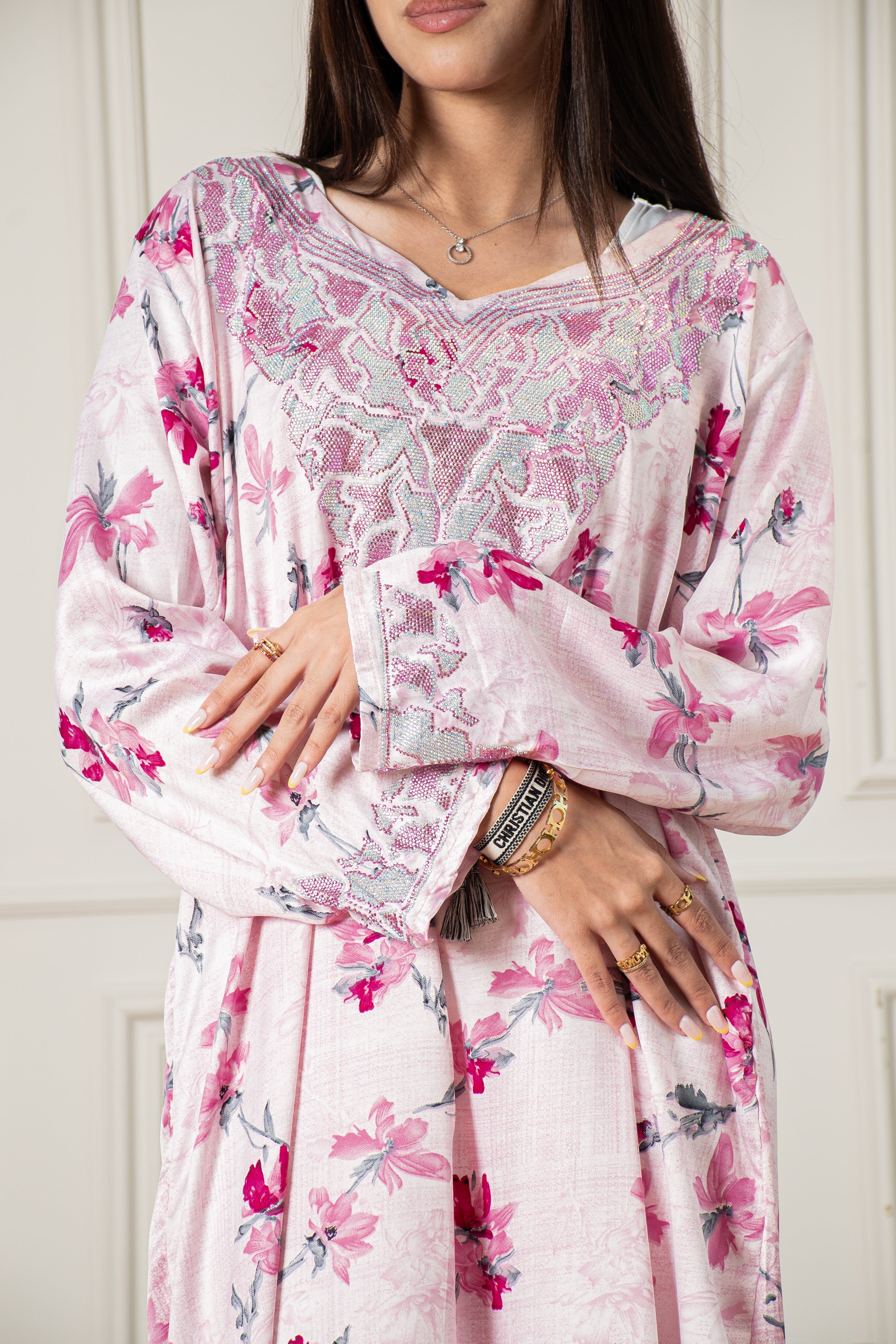 استمتعي بلمسة من الأناقة مع مخارا بلوسوم الوردية. مصنوعة من قماش ناعم وانسيابي بتطريزات زهرية جميلة، وهي مريحة للارتداء في المنزل أو تحت العباية. تصميمها المريح يمنحكِ الراحة والأناقة في آن واحد. أضيفي إليها إكسسوارات بسيطة لإطلالة تجمع بين الأصالة والحداثة.