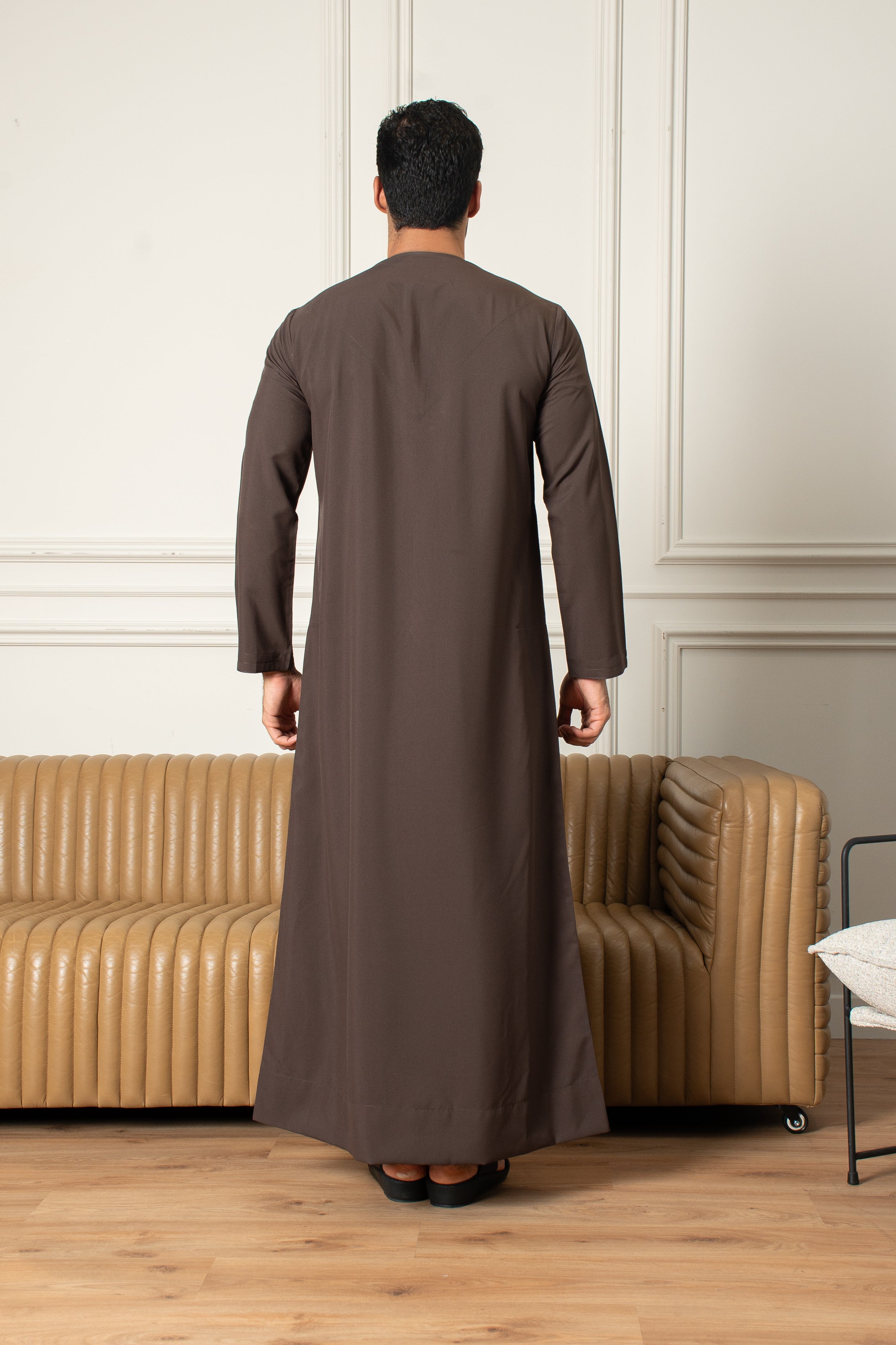 أضفي لمسة من الأناقة البسيطة على خزانة ملابسك مع ثوب إسينشالز الإماراتي بلون الموكا البني. صُمم هذا الثوب خصيصًا للراحة والأناقة الخالدة، فهو مزيج مثالي بين الحرفية الإماراتية التقليدية والبساطة العصرية. يضمن لكِ قماشه الناعم والمسامي شعورًا بالانتعاش والراحة طوال اليوم.