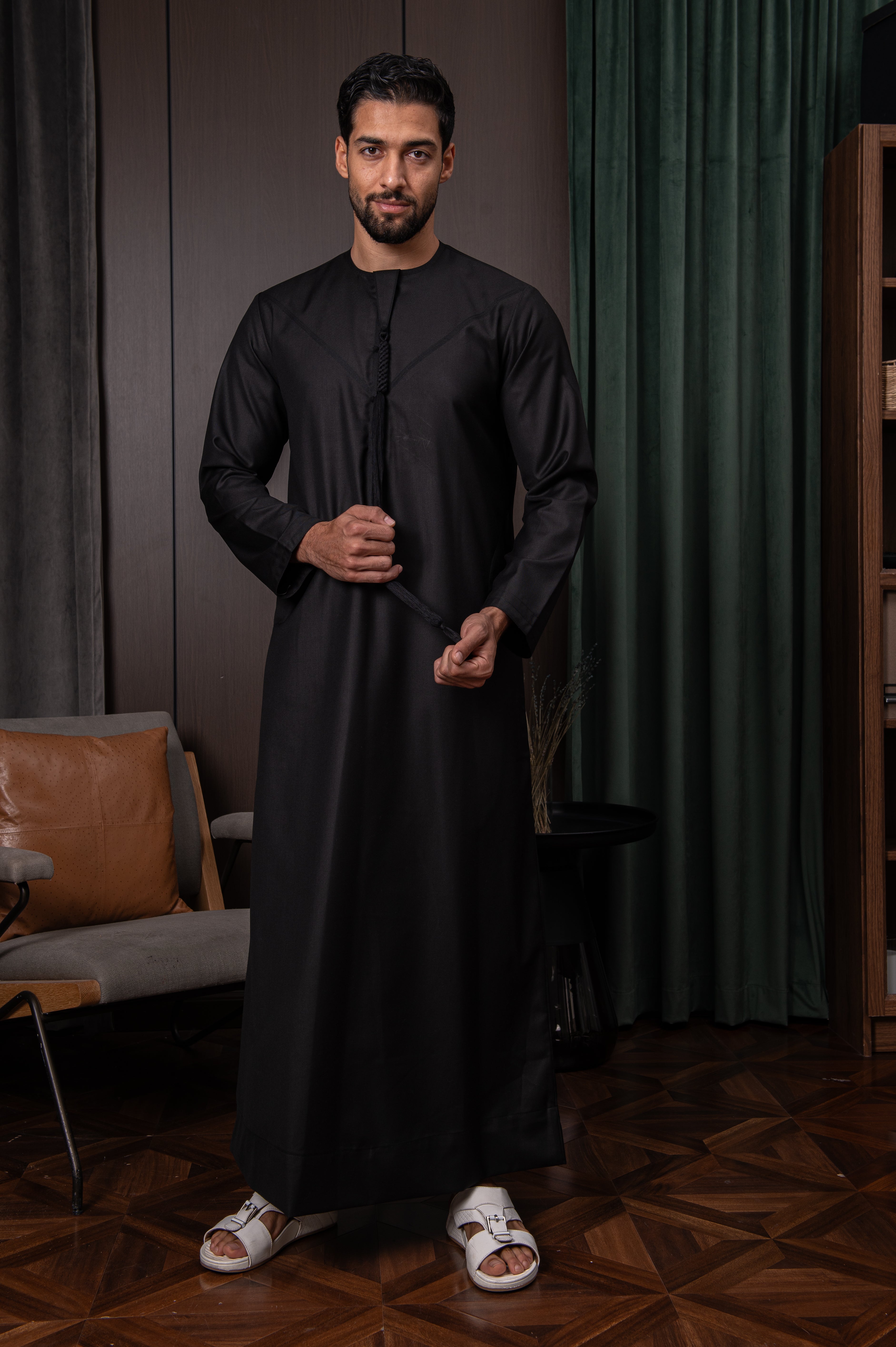 ثوب إماراتي شتوي باللون الأسود الإمبراطوري