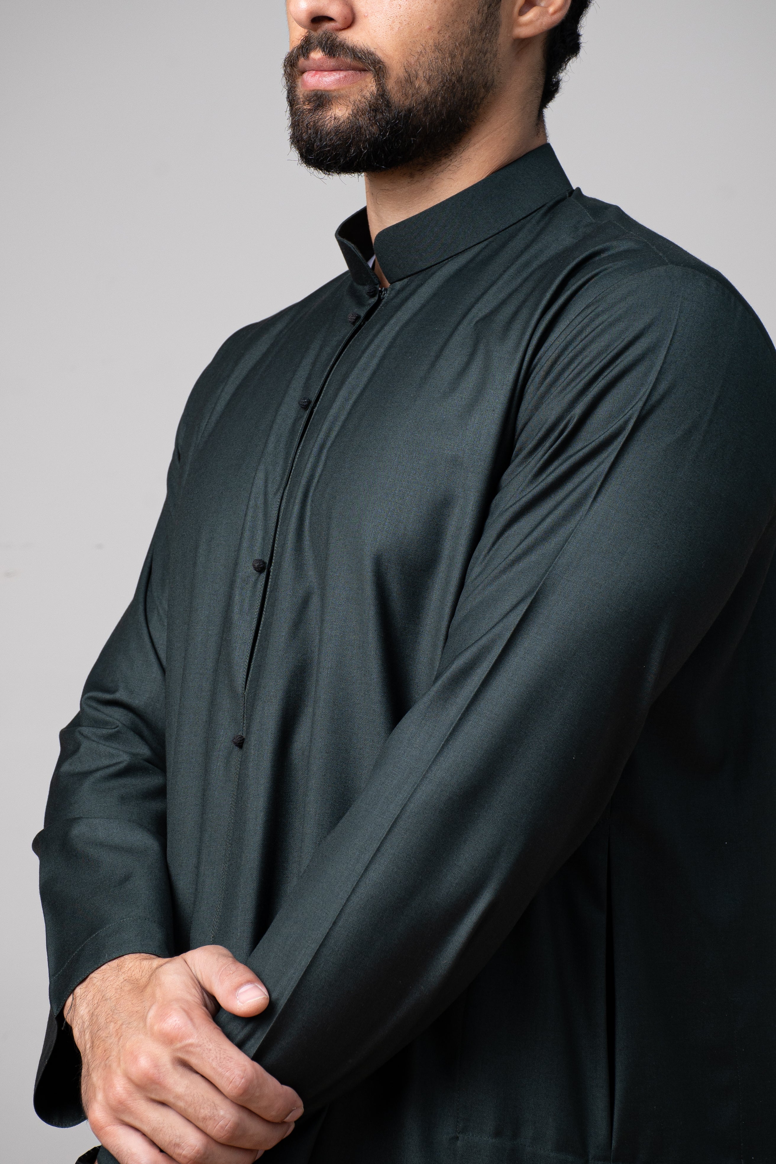 Bahraini Thobe – Luxurious Italian Wool in Forest Green