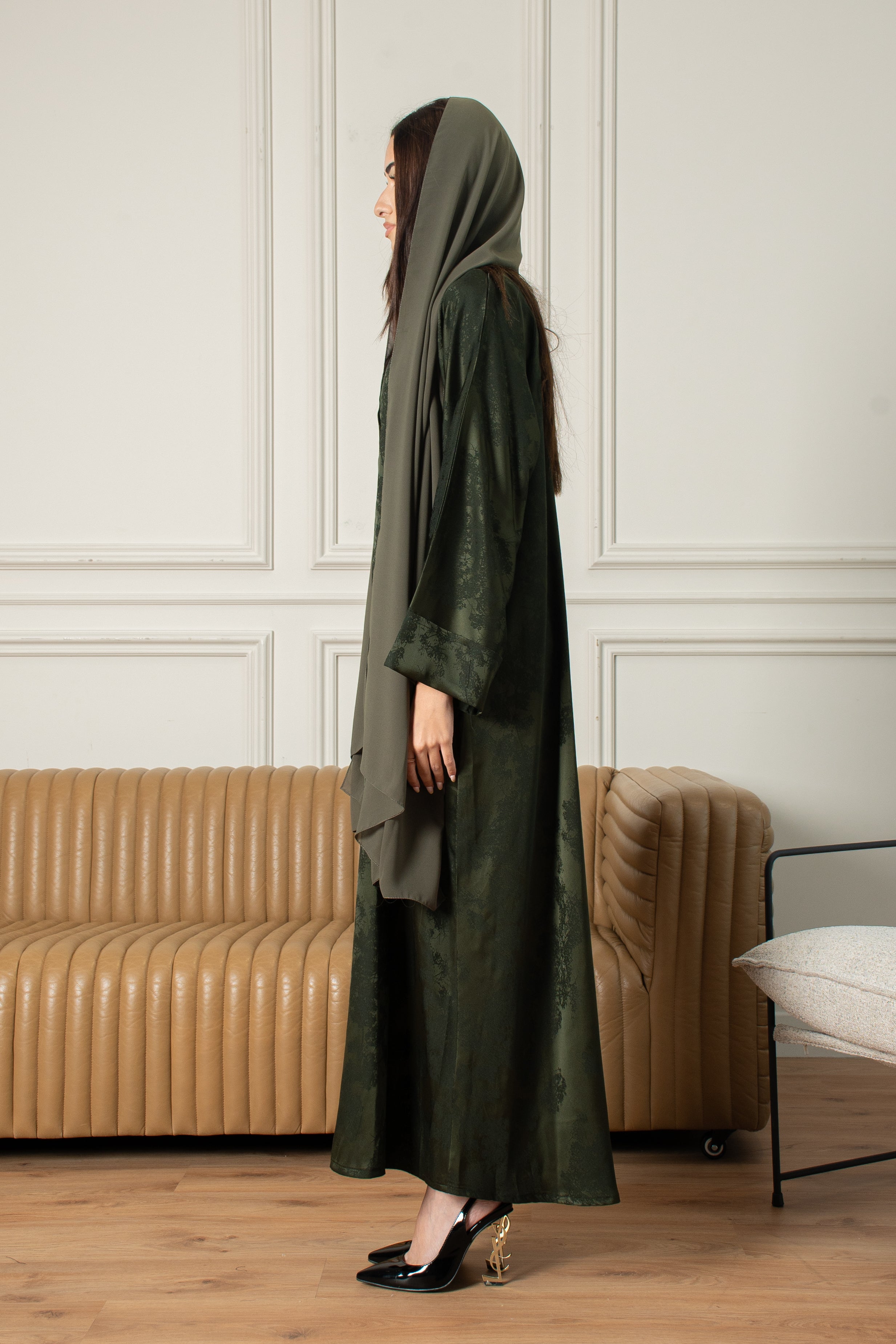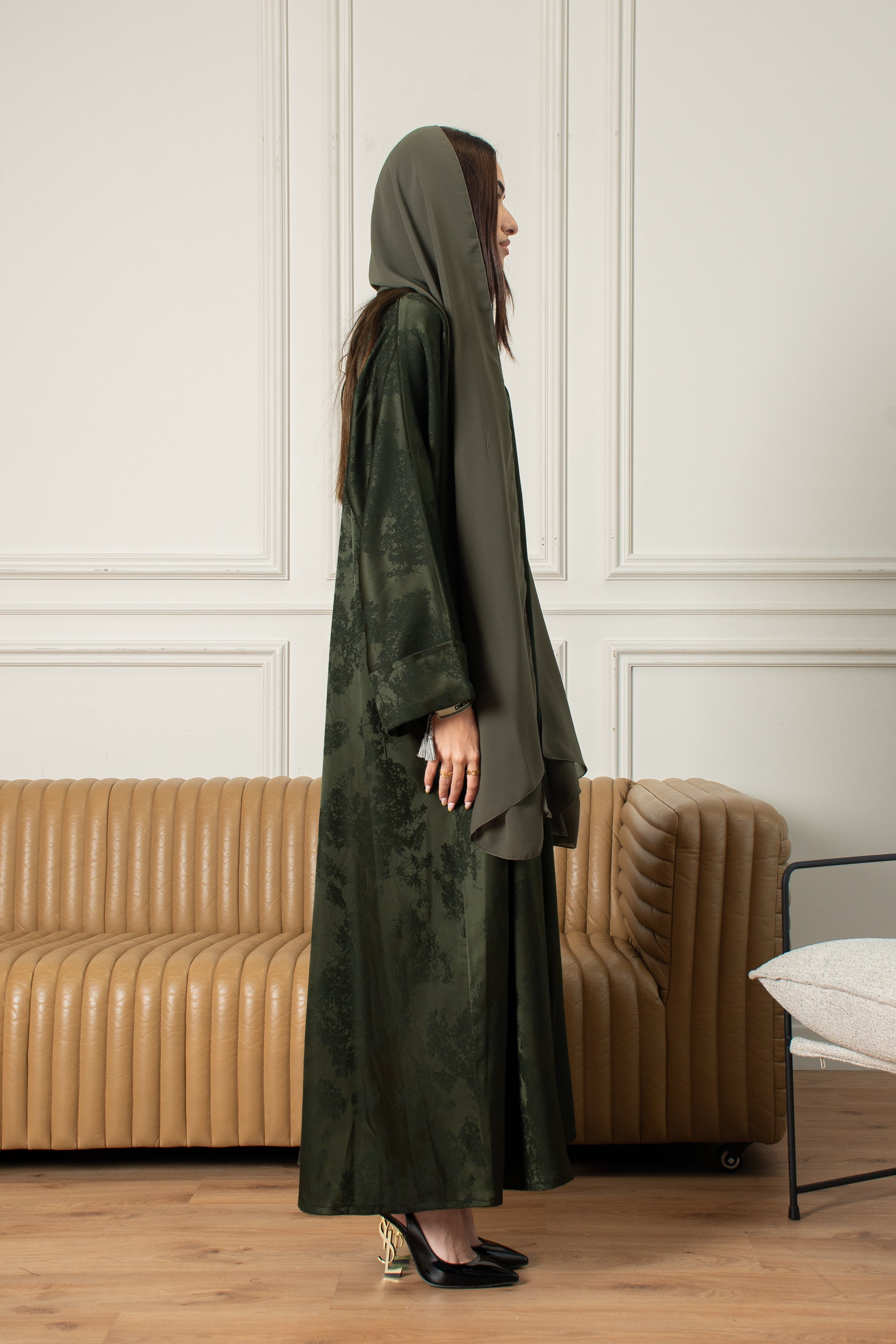 The Midnight Petal Abaya in Green is a nice mix of style and comfort. This 2-piece set includes the abaya and a matching scarf. Itβs perfect for everyday wear or special events. The dark blue color looks elegant, and the pretty floral print adds a nice touch. The flowy design makes it comfortable to wear all day.